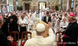 Discursul Sfântului Părinte Papa Leon al XIV-lea participantelor la capitulii generali ai patru institute: Missioneras Hijas de la Sagrada Familia de Nazaret, Institutul „Fiicele din Nazaret”, Institutul „Apostolele Sfintei Familii”, Surorile Carităţii Sfintei Maria (numite ale Bunului Sfat) sâmbătă, 23 august 2025 În numele Tatălui şi al Fiului şi al…