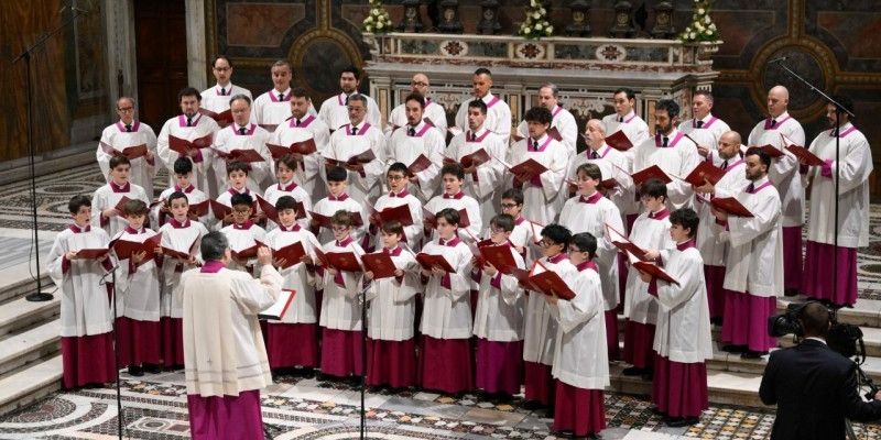 Aș dori să mulțumesc Corului Capelei Sixtine, care în acest concert ne-a făcut să medităm misterul Crăciunului prin limbajul muzicii și al cântecului, limbaj capabil să vorbească nu numai minții, ci și inimii. Îl felicit pe dirijor, Monseniorul Marcos Pavan, și pe dirijorul corului Pueri, Michele Marinelli.