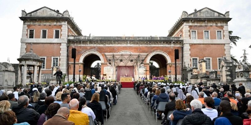 Astăzi, însă, nu suntem aici numai pentru a-i comemora pe cei care au trecut din această lume. Credința creștină, întemeiată pe Paștele lui Cristos, ne ajută de fapt să trăim comemorarea nu numai ca o amintire a trecutului, ci și, și mai ales, ca o speranță viitoare. Nu este atât o întoarcere, cât mai degrabă o privire înainte, spre destinația drumului nostru, spre portul sigur pe care Dumnezeu ni l-a promis, spre sărbătoarea fără sfârșit care ne așteaptă. Acolo, în jurul Domnului Înviat și al celor dragi ai noștri, vom savura bucuria ospățului veșnic: „În ziua aceea – am ascultat în lectura din profetul Isaia – Domnul Sabaot va face un ospăț pentru toate popoarele pe muntele acesta, un ospăț cu mâncăruri grase. […] Va înlătura moartea pentru totdeauna” (Is 25,6.8).